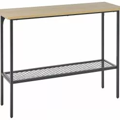 Añade un aire escandinavo a tu recibidor con esta consola. Está fabricada a partir de MDF resistente y duradero. Las patas de metal en contraste garantizan la máxima estabilidad. Puedes utilizar el estante adicional para guardar bolsos o zapatos. Ideal para tener a mano las llaves de la puerta de casa u otros accesorios.