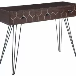 Añade elegancia y modernidad a tu sala de estar con esta cómoda. Está fabricada a partir de tablero de fibra duradero y de alta calidad. Los 3 cajones y la encimera ofrecen el suficiente espacio para guardar las pertenencias y colocar jarrones o figuras decorativas. Las patas de metal garantizan estabilidad.