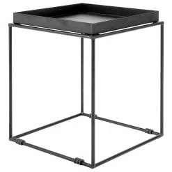 Una mesa auxiliar compacta que mezcla estilo minimalista con funcionalidad. Hecha de metal con recubrimiento en polvo de alta calidad, es muy resistente. Acabado en mate, es una pieza versátil para cualquier tipo de interior. Cuenta con una bandeja de mesa que evita que tus bebidas, alimentos o elementos decorativos caigan.