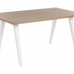 Esta mesa de comedor es ideal para cenar, organizar una fiesta con amigos o una comida familiar. El tablero de MDF enchapado en roble aporta un toque rústico al diseño. Las patas de madera de caucho ligeramente inclinadas combinan bien en cualquier interior de estilo minimalista, escandinavo y rústico. Encaja bien con un juego de sillas de madera o de metal.