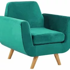 Añade comodidad a tu sala de estar con este sillón. Está fabricado a partir de tela de terciopelo de alta calidad y suave al tacto. El cojín de asiento y el respaldo ligeramente inclinado son la combinación perfecta comodidad y apariencia visual. Las patas de madera inclinadas garantizan la máxima estabilidad.