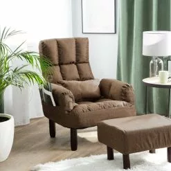 Añade elegancia a tu sala de estar con este sillón decorativo. Está fabricado a partir de tela de terciopelo de alta calidad y suave al tacto. Las patas de metal garantizan estabilidad. El reposapiés incorporado proporciona el máximo nivel de confort. Puedes utilizarlo también como mesa auxiliar. Combina bien en cualquier interior de estilo moderno o tradicional.